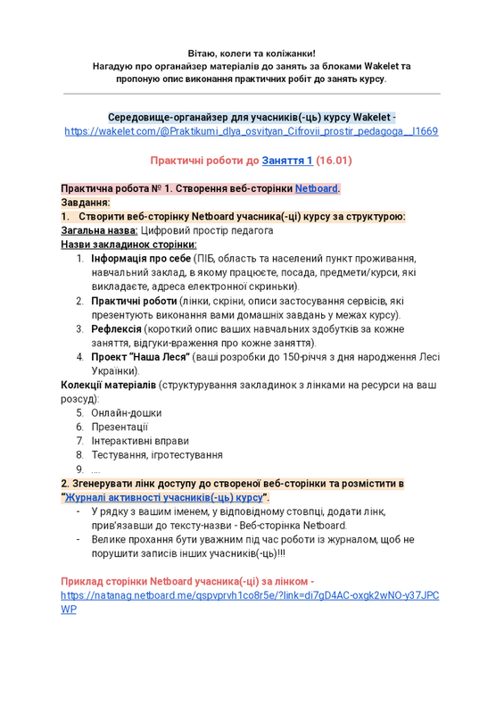 Презентації результатів практичних робіт учасників(-ць) курсу. Іменні веб-сторінки Netboard
